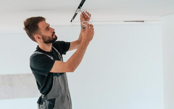 Оценка условий монтажа. Определяются параметры потолка, проверяется электрическая проводка на предмет соответствия требованиям безопасности.